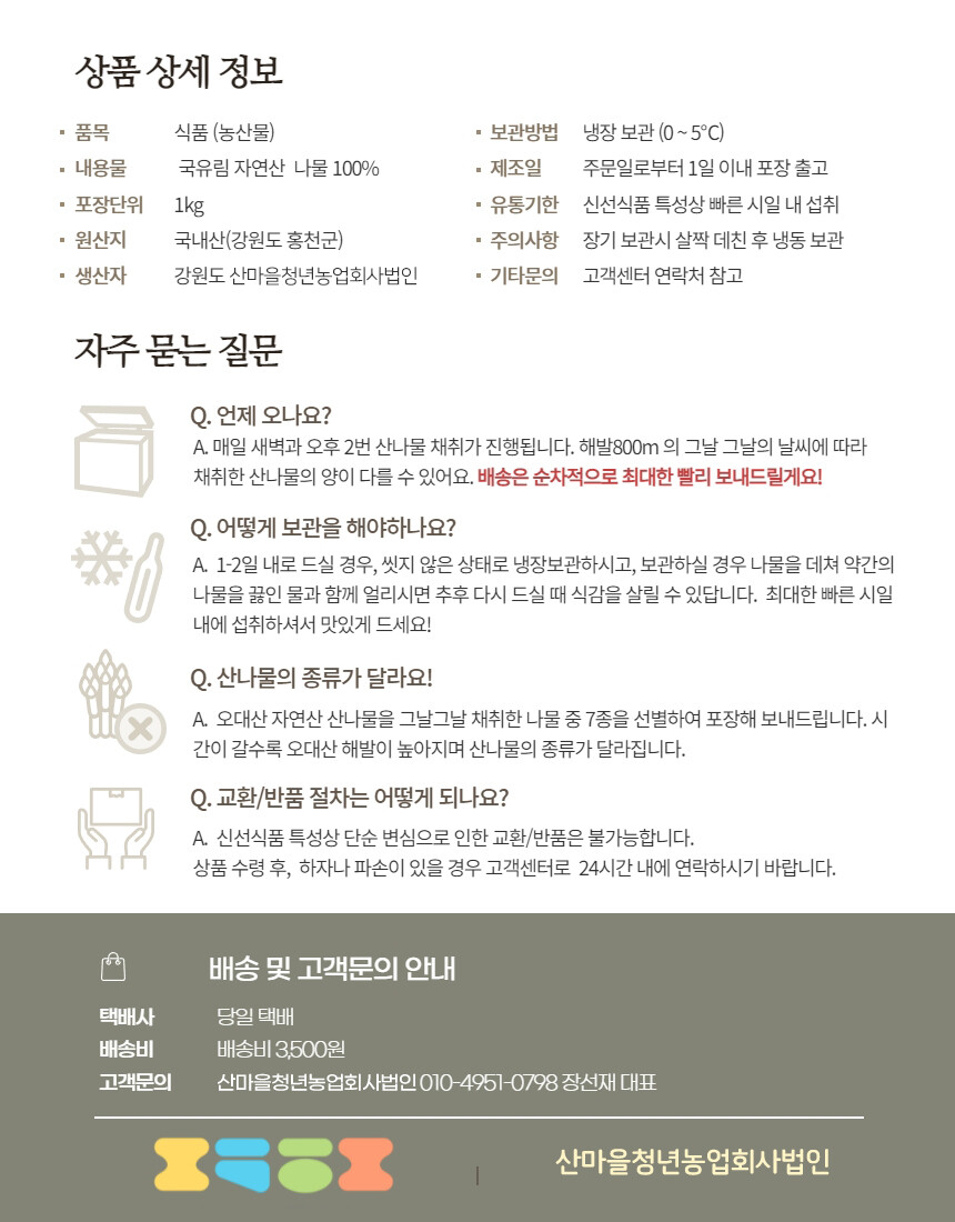 수령 후 즉시 사용 요망, 즉시 사용이 어려울 경우 박스를 열어 나물을 뒤집어 열기를 빼 낸 후 냉장고관