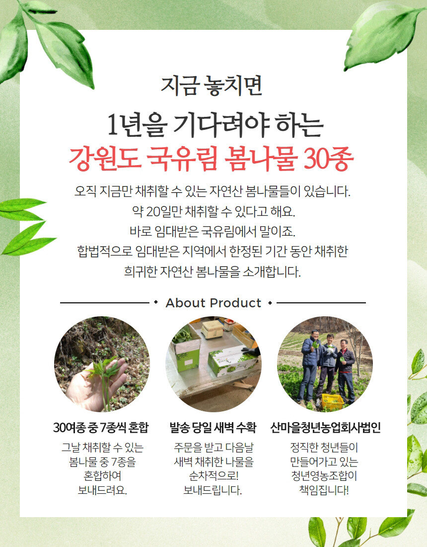 30여종 자연산 산나물 중 7종 혼합