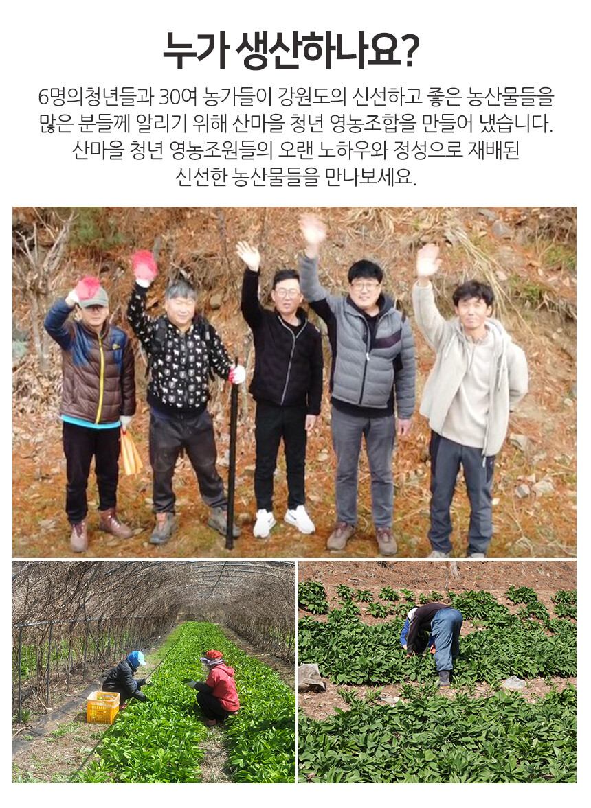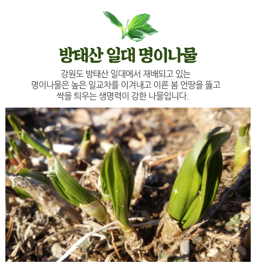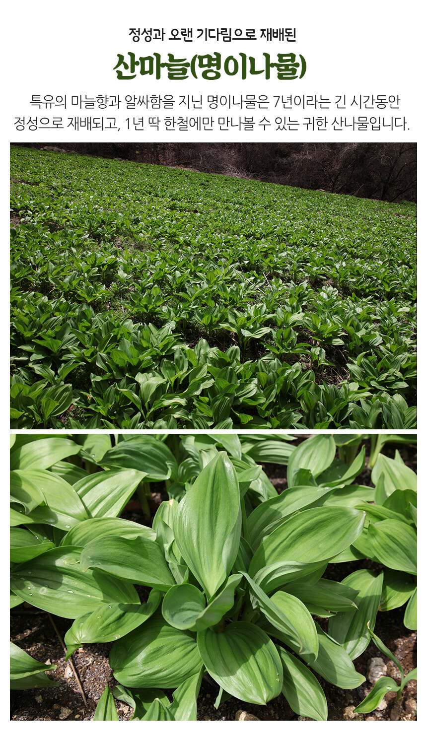 - 강원도 홍천 청정지역에서 자란 맛있는 명이나물 / 해발 600m 고랭지에서 자라 연하고 부드러워요!